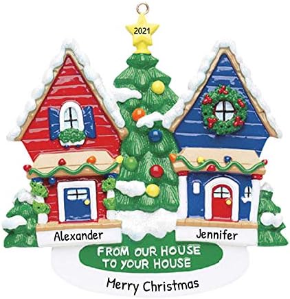 Amazon Com Personalized Neighbors Christmas Tree Ornament 2021 Our House Yours Elegant Garnish Light Snowy Red Blue Wooden Family Homes Next Door Help New First Thank Gift Year Free Customization Home